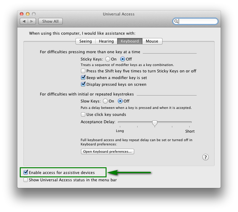 - Worksnaps requires the Access for Assistive Devices to be enabled (in order to capture keyboard events). You can enable it by doing the following.